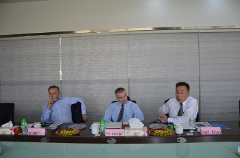 2018年4月20日,英国格拉斯哥大学Quail 教授 和 Gorrie 教授到访双达公司,两位教授参观了公司产品展厅、泵生产车间和管道生产车间,并就双方技术合作事宜进行了会谈。双达公司吴永贵董事长、张翼飞常务副总、萧靖国副总、国贸部长倪晓峰等参加了此次会谈。